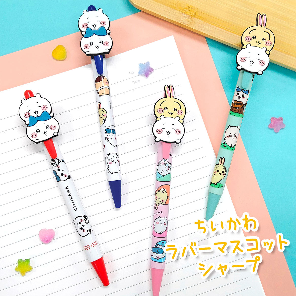 ちいかわ達のかわいいラバーマスコットがついたシャープペンシルです!