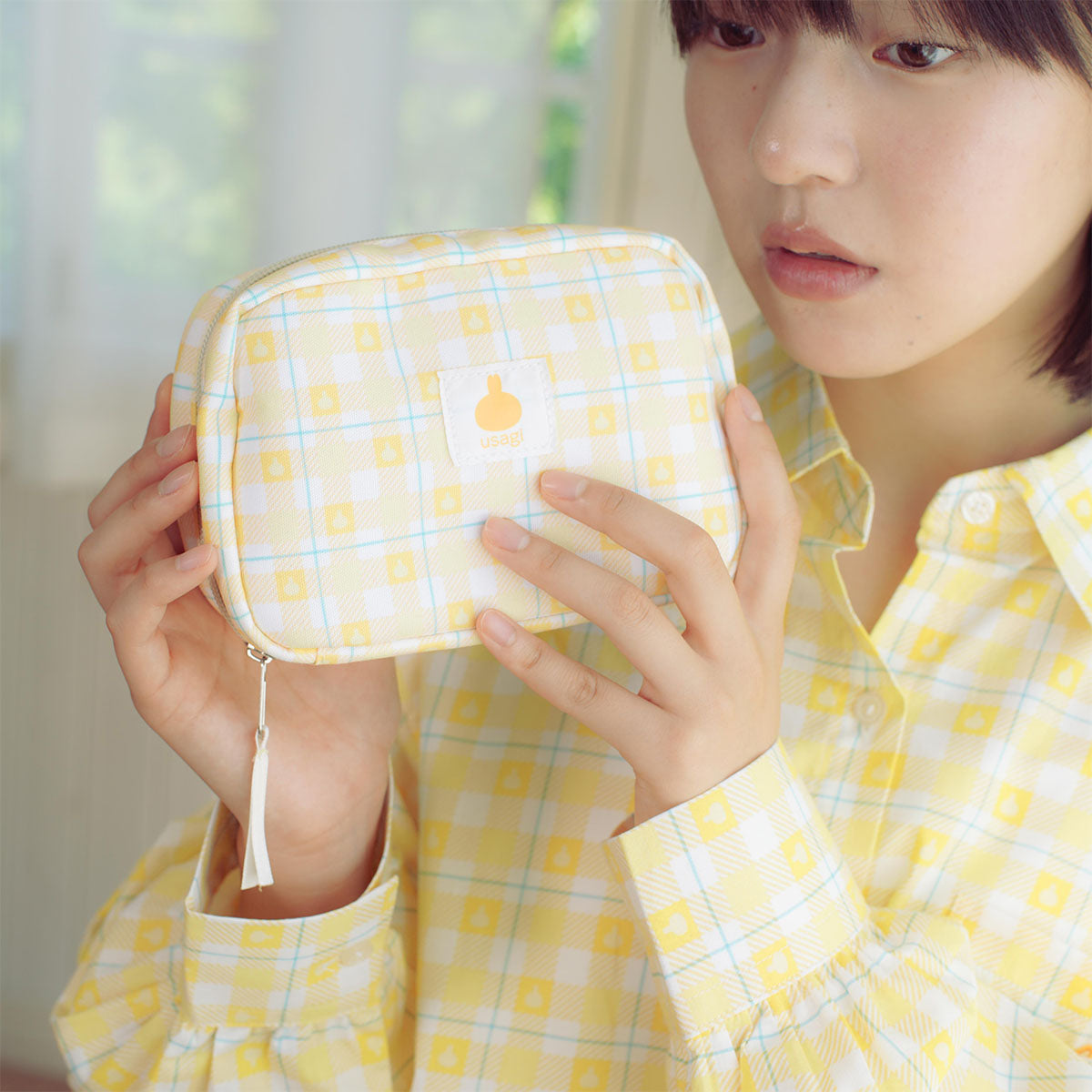 ちいかわ チェックシリーズ ポーチ うさぎ イエロー